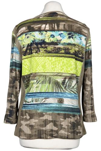 | Details | Jersey, Dreiviertelarm, Rundhals, Front Reißverschluss, Camouflage, Motivprint |