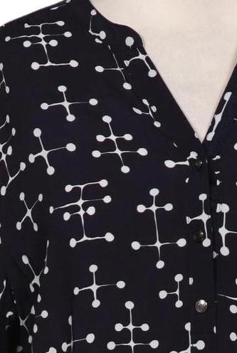 | Details | Jersey, Langarm, V-Ausschnitt, verschlusslos, Punkte |