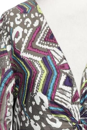| Details | Jersey, Langarm, V-Ausschnitt, verschlusslos, Motivprint |