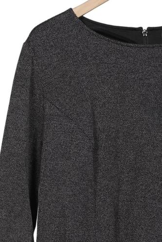 | Details | Grobstrick, Dreiviertelarm, Rundhals, Reißverschluss/Knöpfe hinten, Einfarbig |