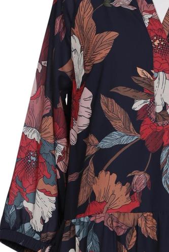 | Details | Jersey, Rüschen, Dreiviertelarm, V-Ausschnitt, Floral |