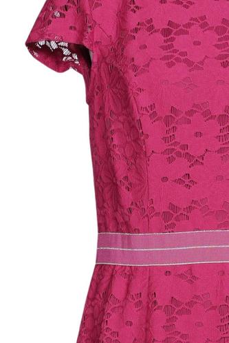| Details | Spitze, Kurzarm, Rundhals, Reißverschluss/Knöpfe hinten, Floral |