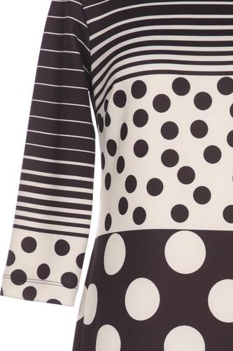 | Details | Jersey, Dreiviertelarm, Rundhals, Reißverschluss/Knöpfe hinten, Punkte, Streifen |
