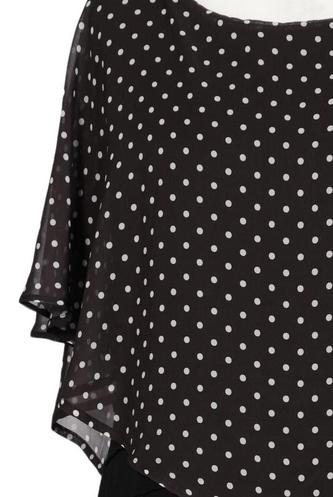 | Details | Jersey, Chiffon, Plissee, Kurzarm, Rundhals, Punkte |