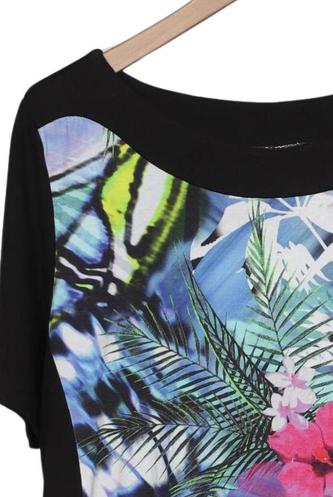 | Details | Jersey, Kurzarm, Rundhals, Floral, Zebra |