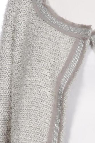 | Details | Fransen, Grobstrick, Langarm, Rundhals, Front Knopfleiste, Einfarbig |