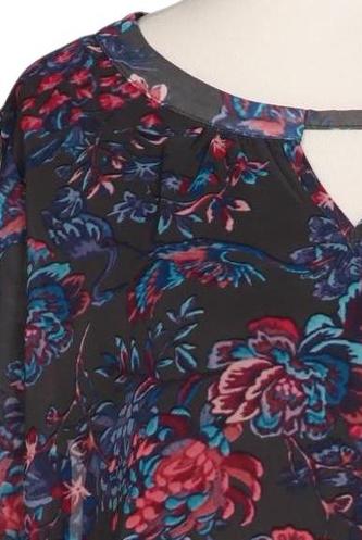 | Details | Cutouts, Chiffon, Langarm, V-Ausschnitt, verschlusslos, Floral |