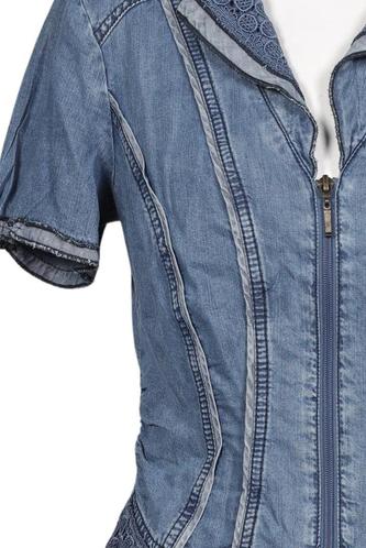| Details | Jeans, Kurzarm, V-Ausschnitt, Front Reißverschluss, Einfarbig |