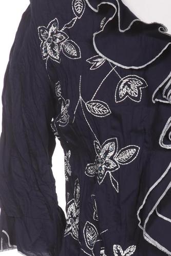 | Details | Stickerei, Rüschen, Dreiviertelarm, V-Ausschnitt, verschlusslos, Floral |