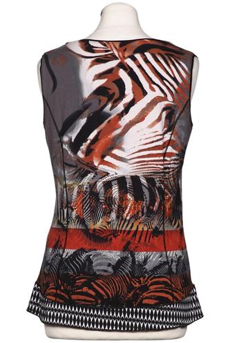 | Details | Jersey, ärmellos, Rundhals, Front Reißverschluss, Zebra |