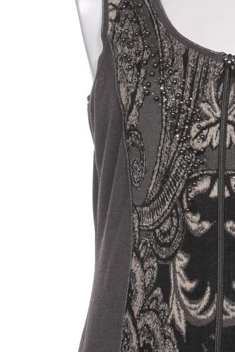 | Details | Jersey, ärmellos, Rundhals, Front Reißverschluss, Paisley |