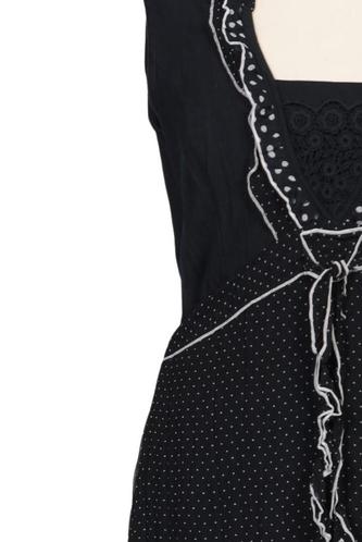 | Details | Rüschen, ärmellos, Bindegürtel, V-Ausschnitt, Punkte |