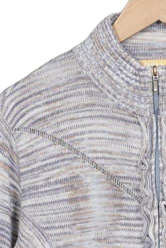 | Details | Grobstrick, Langarm, Rundhals, Front Reißverschluss, Streifen |