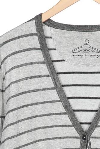 | Details | Grobstrick, Langarm, Front Knopfleiste, Streifen |