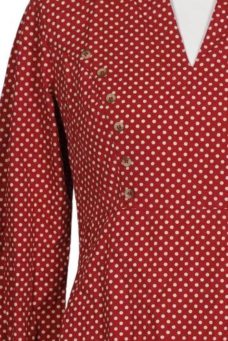 | Details | Stickerei, Langarm, V-Ausschnitt, verschlusslos, Punkte |