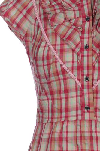 | Details | Rüschen, Kurzarm, Bindegürtel, Front Knopfleiste, Kariert |