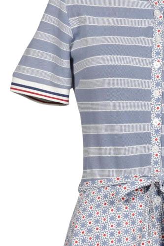 | Details | Jersey, Kurzarm, Bindegürtel, Rundhals, Front Knopfleiste, Floral, Streifen |