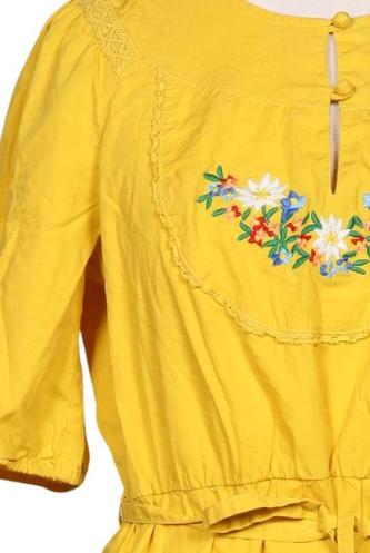 | Details | Stickerei, Kurzarm, Bindegürtel, Rundhals, Front Knopfleiste, Floral |