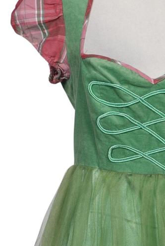 | Details | Rüschen, Tüll, Kurzarm, Bindegürtel, V-Ausschnitt, Reißverschluss/Knöpfe hinten, Kariert |