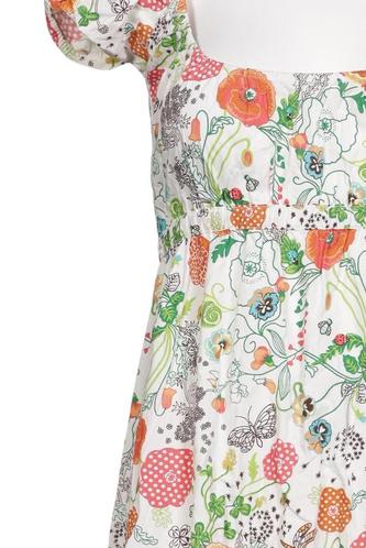 | Details | Kurzarm, V-Ausschnitt, Reißverschluss/Knöpfe hinten, Floral |