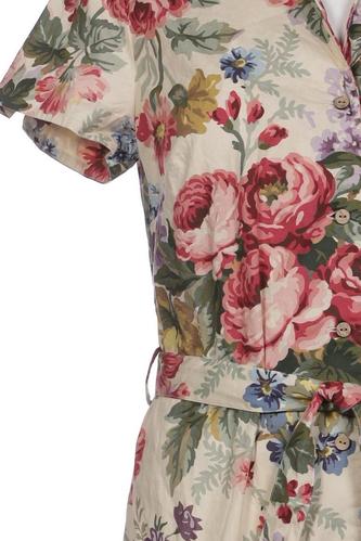 | Details | Kurzarm, Bindegürtel, V-Ausschnitt, Front Knopfleiste, Floral |