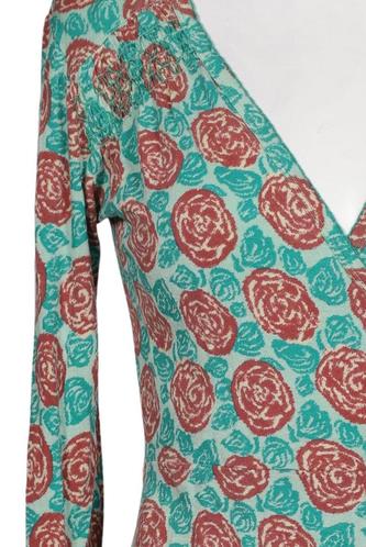 | Details | Jersey, Langarm, Wickeloptik, V-Ausschnitt, Floral |