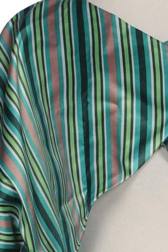 | Details | Satin, Kurzarm, V-Ausschnitt, verschlusslos, Streifen |