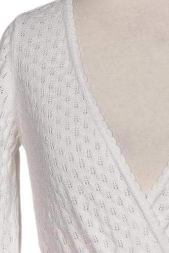| Details | Grobstrick, Langarm, Bindegürtel, Wickeloptik, verschlusslos, Einfarbig |