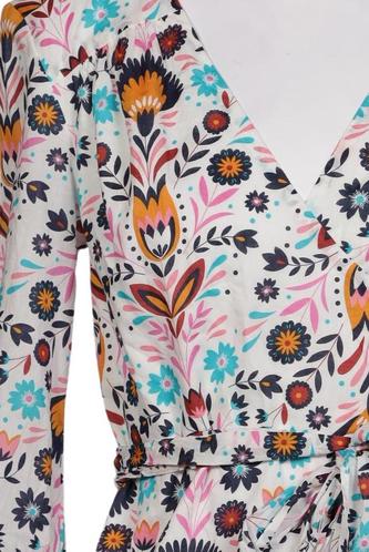 | Details | Jersey, Langarm, Bindegürtel, V-Ausschnitt, verschlusslos, Floral |