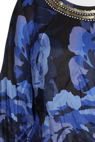 | Details | Satin, Strass, metallic, Dreiviertelarm, Rundhals, Reißverschluss/Knöpfe hinten, Floral |