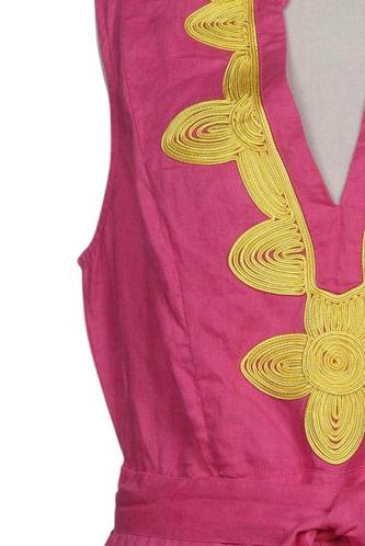 | Details | Stickerei, ärmellos, Bindegürtel, V-Ausschnitt, Reißverschluss/Knöpfe hinten |
