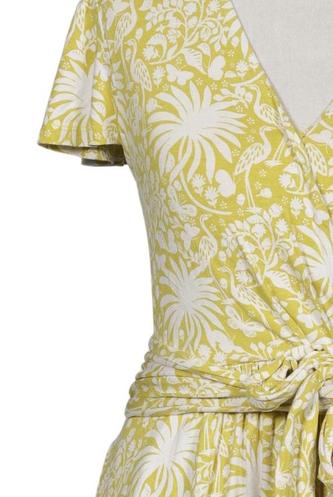 | Details | Jersey, Kurzarm, Bindegürtel, Wickeloptik, V-Ausschnitt, Floral |