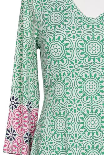 | Details | Jersey, Dreiviertelarm, V-Ausschnitt, Floral |