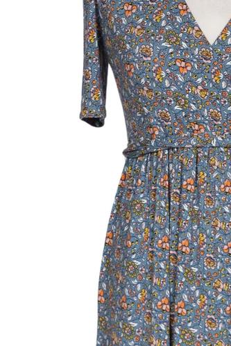 | Details | Jersey, Rüschen, Kurzarm, Bindegürtel, Wickeloptik, V-Ausschnitt, Floral |