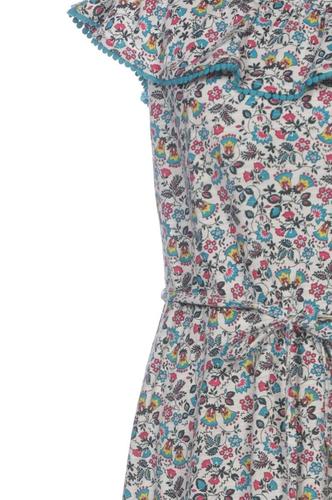 | Details | Jersey, Rüschen, Kurzarm, Bindegürtel, V-Ausschnitt, Gummizug/Tunnelzug, Floral |