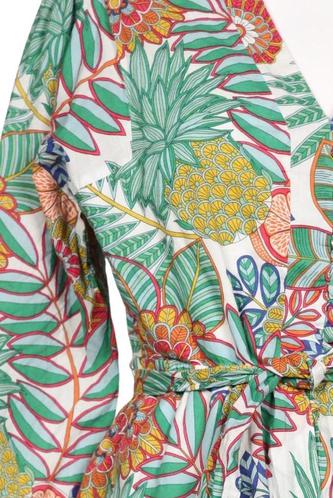 | Details | Dreiviertelarm, Bindegürtel, V-Ausschnitt, Floral |