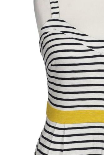 | Details | Jersey, ärmellos, Bindegürtel, V-Ausschnitt, Streifen |