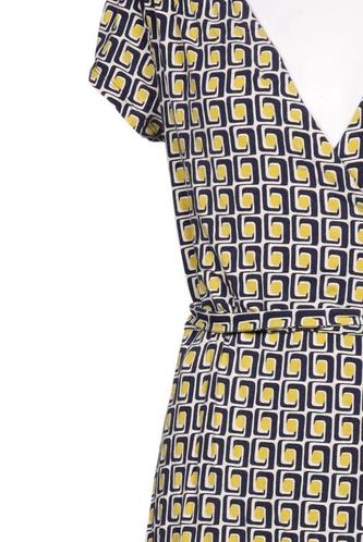 | Details | Jersey, Kurzarm, Bindegürtel, Wickeloptik, V-Ausschnitt, Motivprint |