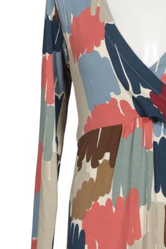 | Details | Jersey, Langarm, Bindegürtel, Wickeloptik, V-Ausschnitt, Motivprint |