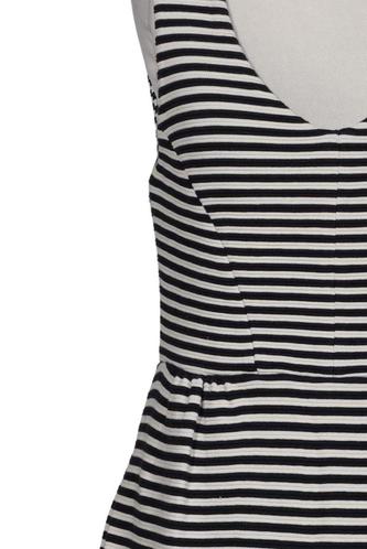 | Details | Jersey, ärmellos, V-Ausschnitt, Reißverschluss/Knöpfe hinten, Streifen |