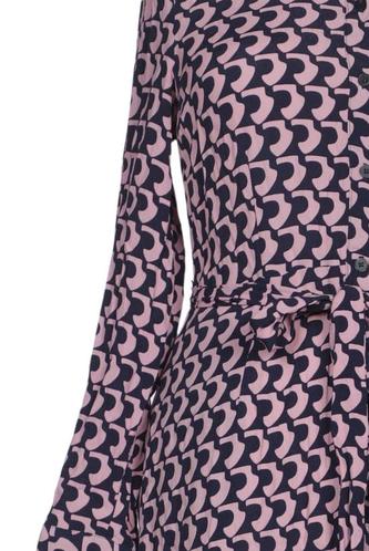 | Details | Langarm, Bindegürtel, Rundhals, Front Knopfleiste, Motivprint |
