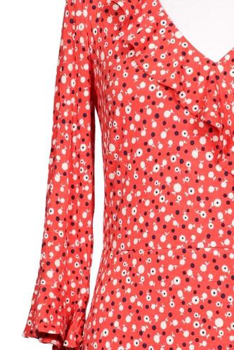 | Details | Rüschen, Dreiviertelarm, V-Ausschnitt, Floral |