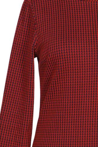 | Details | Grobstrick, Dreiviertelarm, Rundhals, Reißverschluss/Knöpfe hinten, Kariert |