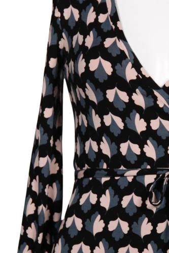 | Details | Jersey, Langarm, Bindegürtel, Wickeloptik, V-Ausschnitt, Motivprint |