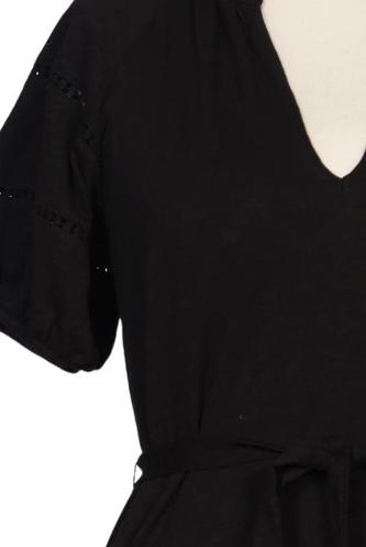 | Details | Jersey, Lochstickerei, Kurzarm, Bindegürtel, V-Ausschnitt, Einfarbig |