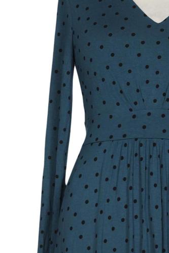 | Details | Jersey, Langarm, Bindegürtel, V-Ausschnitt, Punkte |