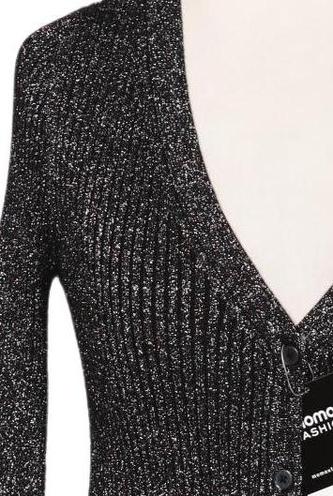 | Details | metallic, Grobstrick, Langarm, Front Knopfleiste, Einfarbig |