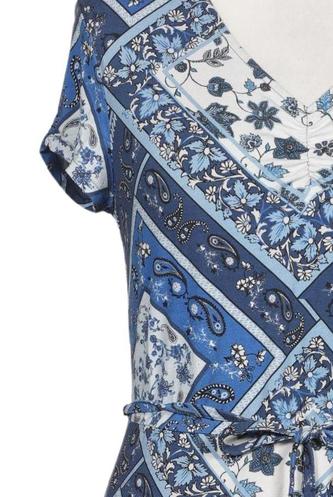 | Details | Jersey, Kurzarm, Bindegürtel, V-Ausschnitt, Floral |