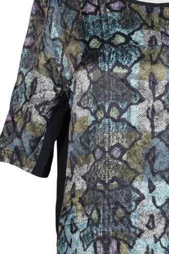 | Details | Satin, Kurzarm, Rundhals, Reißverschluss/Knöpfe hinten, Motivprint |