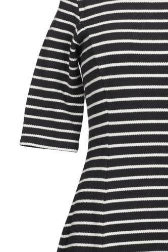 | Details | Jersey, Kurzarm, Rundhals, Reißverschluss/Knöpfe hinten, Streifen |